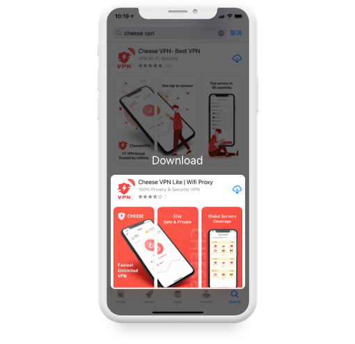 IOS end downloads Cheese vpn software through App Store; Android end downloads Cheese vpn software through Google paly.