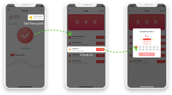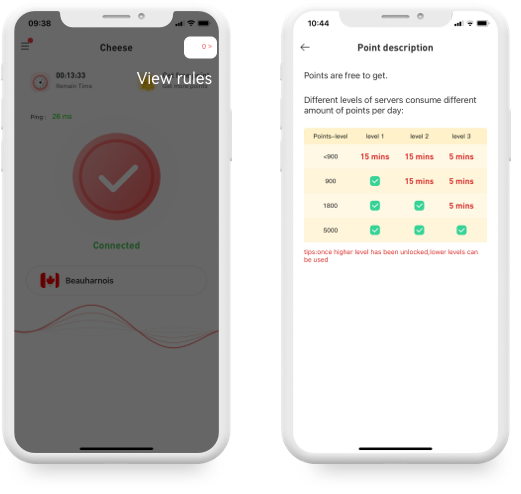 Register an account or no need to register, click Get free point to view the rules of Cheese VPN points redemption route.