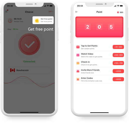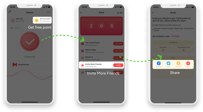 Invite friends to use CHEESE VPN to earn points